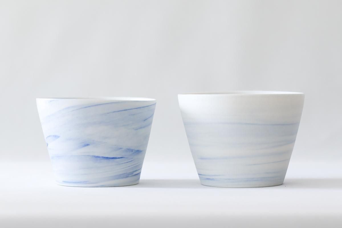 村上祐仁さんの作品は直線曲線が美しく、さらりとした質感が特徴です。白は磁器(半磁器)、黒は陶器ですが、いずれも軽くて使いやすい器です。
